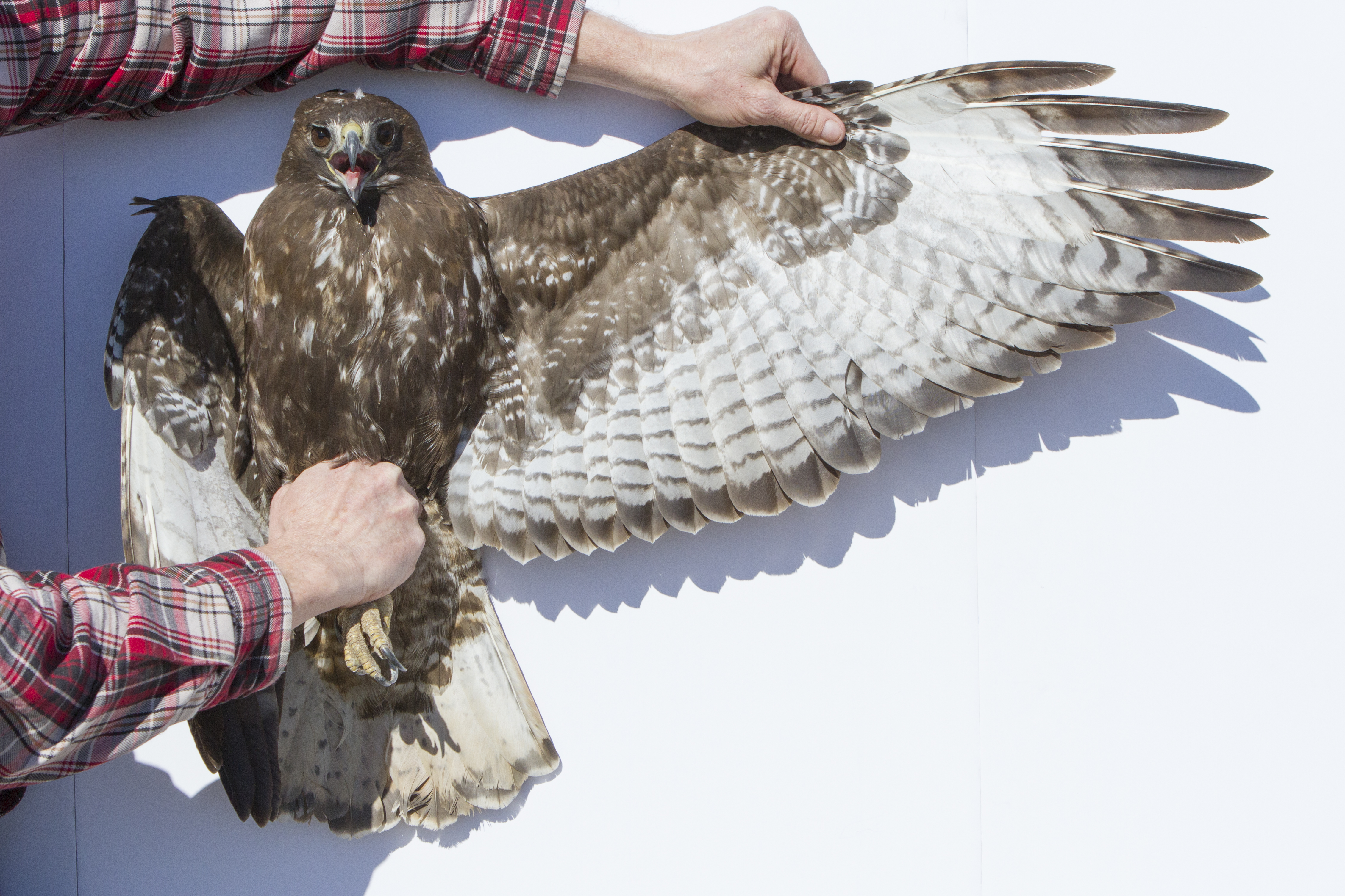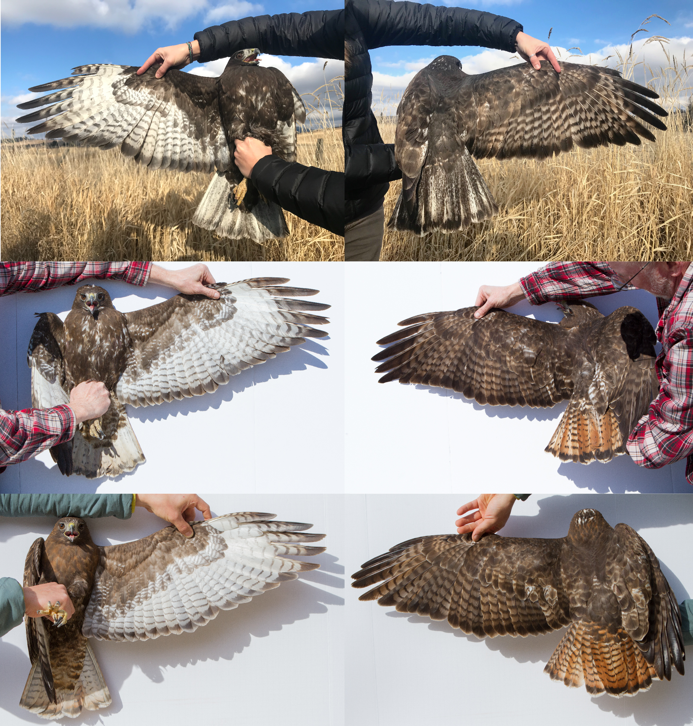 In February 2020, we trapped a very interesting dark bird north of Atchison, Kansas. We were targeting dark non-harlani for our transmitter effort to track these birds to their breeding grounds as a first step for understanding if the subspecies abieticola is polymorphic.