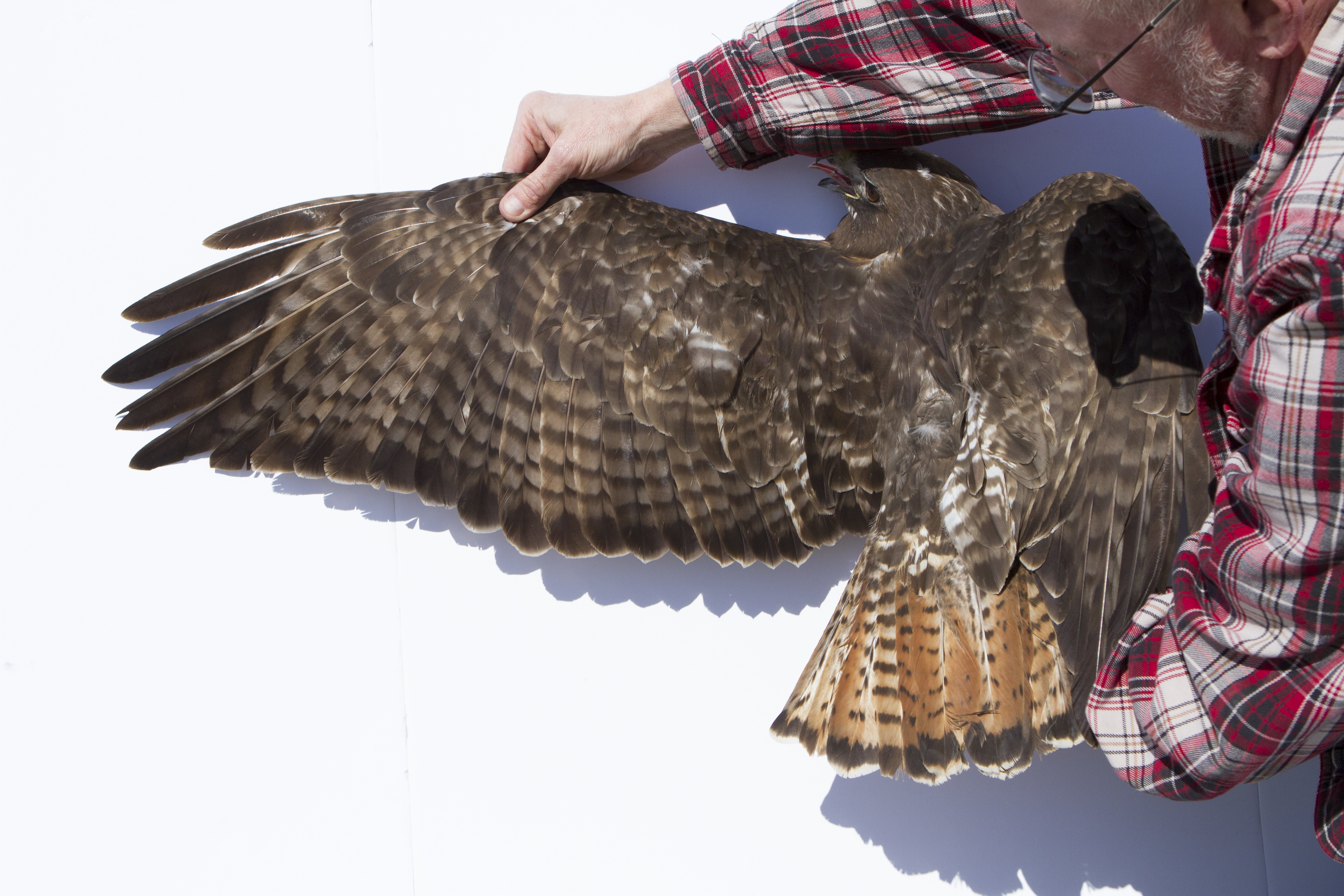 At first pass this bird looked like our target, but when we extracted it we immediately saw the multiple harlani traits throughout the birds plumage. After later successfully trapping our targets, I came back to photos of this bird for comparison and recognized the similarities in traits, which led me to the conclusion that this interesting dark bird is likely an intergrade between harlani and the dark birds that we outfitted with transmitters (we are calling these abieticola, which might be an oversimplification, but we’re working on it!)